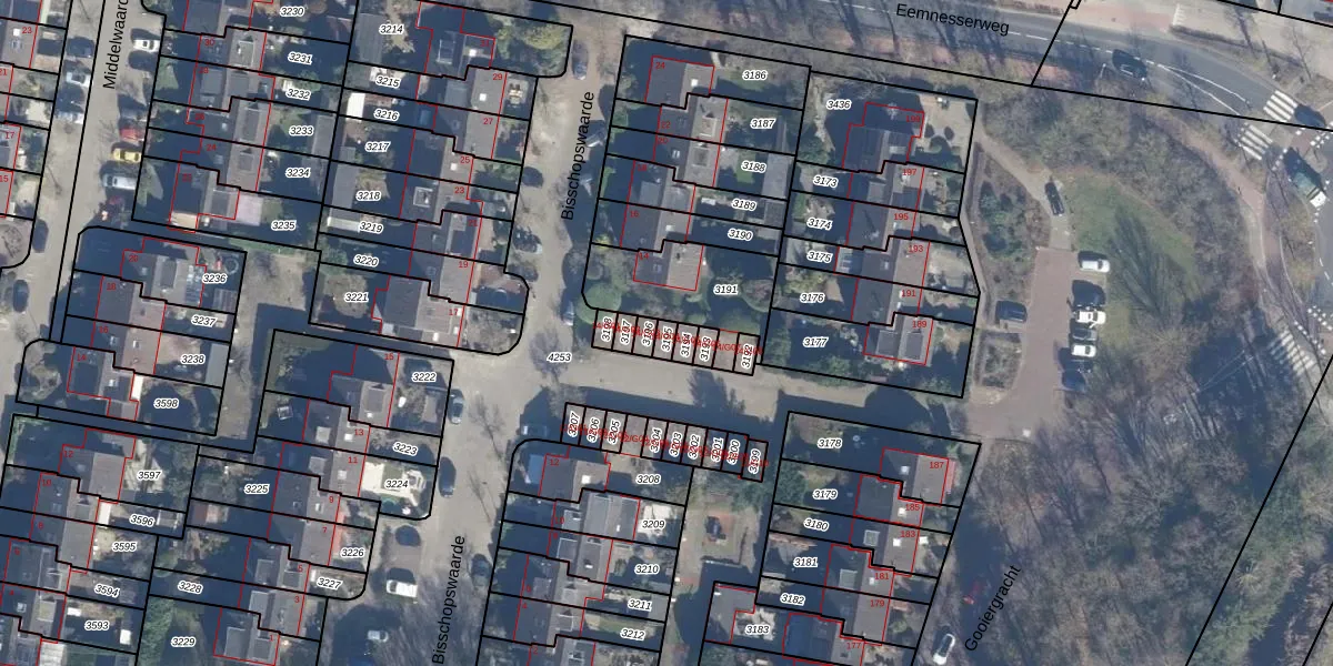 Bisschopswaarde 14-G04 is gelegen op kadastraal perceel LRN01G3195. Deze kadastrale aanduiding is uniek en wordt gebruikt door het Kadaster om eigendomsrechten en andere zakelijke rechten vast te leggen. Het perceel maakt onderdeel uit van de kadastrale gemeente Laren Noord-Holland.