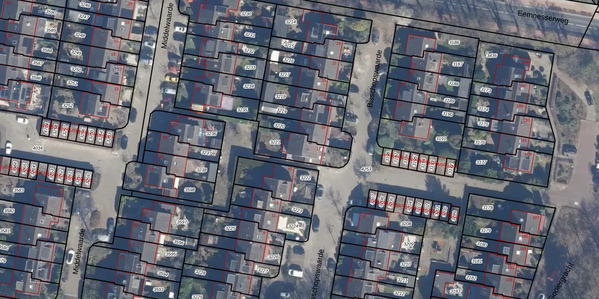 Het perceel waarop Bisschopswaarde 17 staat heeft een oppervlakte van 250 m². Dit is een middelgroot perceel. De perceeloppervlakte wordt geregistreerd door het Kadaster. Gedetailleerde informatie over de maten van dit perceel kunt u vinden in het rapport Kadastrale kaart met maatvoering van Bisschopswaarde 17.