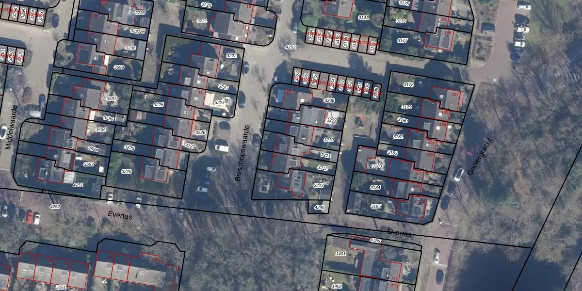 Het perceel waarop Bisschopswaarde 6 staat heeft een oppervlakte van 141 m². Dit is een middelgroot perceel. De perceeloppervlakte wordt geregistreerd door het Kadaster. Gedetailleerde informatie over de maten van dit perceel kunt u vinden in het rapport Kadastrale kaart met maatvoering van Bisschopswaarde 6.