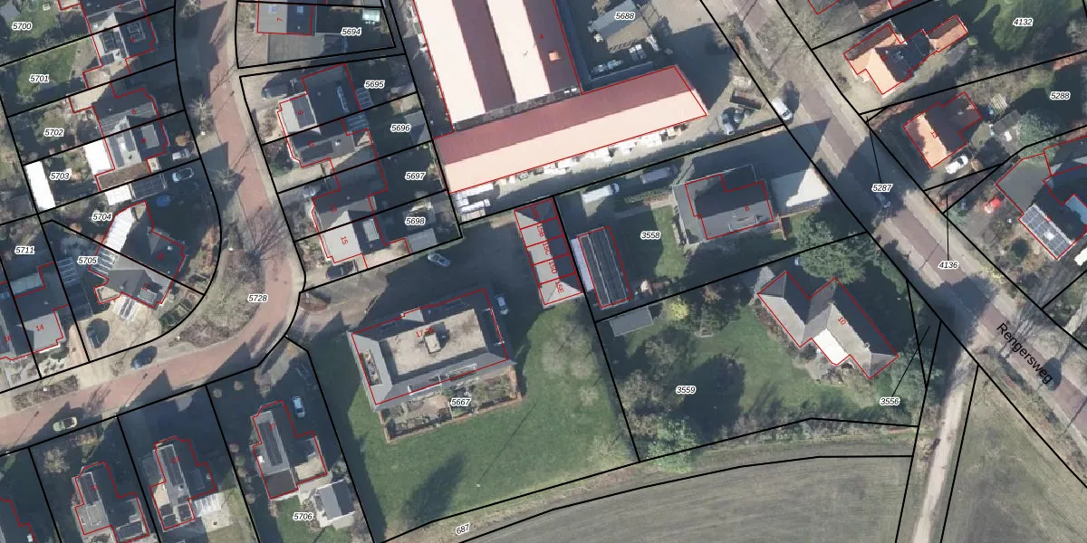 Het perceel waarop het adres ligt is LRN02-C-5667. De afkorting 'LRN02' staat voor kadastrale gemeente Laren Gelderland. De gemiddelde perceelgrootte in Laren Gelderland is 8394,91 m². Dit perceel is kleiner: de perceeloppervlakte bedraagt 2530 m². De grootste perceeloppervlakte in de kadastrale gemeente is 36,7 ha. De kleinste oppervlakte bedraagt 0 m². Op het perceel zijn 10 adressen aanwezig. De huidige grenzen van het perceel zijn digitaal in de Basisregistratie Kadaster (BRK) geregistreerd op 26-10-2009.