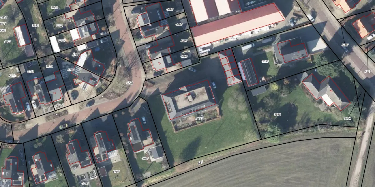 Het adres ligt op het perceel LRN02-C-5667, dat zich in de kadastrale gemeente Laren Gelderland bevindt. De gemiddelde perceelgrootte in Laren Gelderland is 8394,91 m². Dit perceel is kleiner: de perceeloppervlakte bedraagt 2530 m². De grootste perceeloppervlakte in de kadastrale gemeente is 36,7 ha. De kleinste oppervlakte bedraagt 0 m². Op het perceel zijn 10 adressen aanwezig. De laatste wijziging in het de Basisregistratie Kadaster (BRK) was op 26-10-2009.