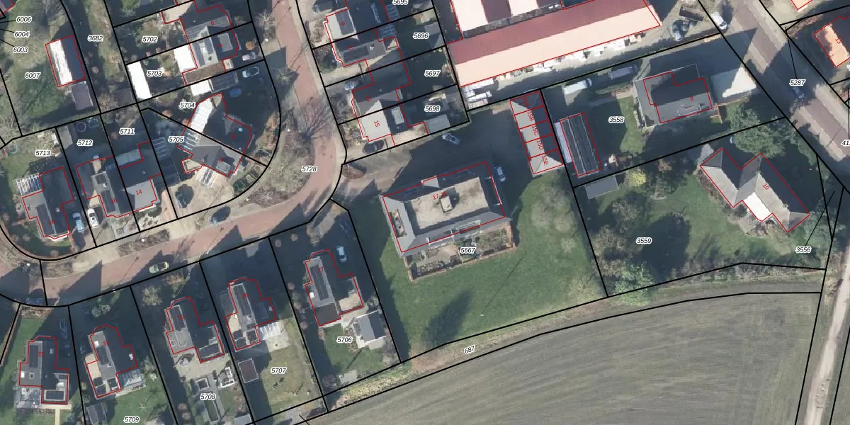 Het adres ligt op het perceel LRN02-C-5667, dat zich in de kadastrale gemeente Laren Gelderland bevindt. De gemiddelde perceelgrootte in Laren Gelderland is 8394,91 m². Dit perceel is kleiner: de perceeloppervlakte bedraagt 2530 m². De grootste perceeloppervlakte in de kadastrale gemeente is 36,7 ha. De kleinste oppervlakte bedraagt 0 m². Op het perceel zijn 10 adressen aanwezig. In de Basisregistratie Kadaster (BRK) werden de grenzen van het perceel geregistreerd op 26-10-2009.