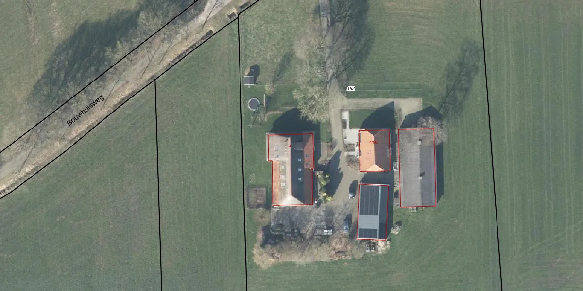 Bouwhuisweg 4 is gelegen op kadastraal perceel LCM00T152. Deze kadastrale aanduiding is uniek en wordt gebruikt door het Kadaster om eigendomsrechten en andere zakelijke rechten vast te leggen. Het perceel maakt onderdeel uit van de kadastrale gemeente Lochem.