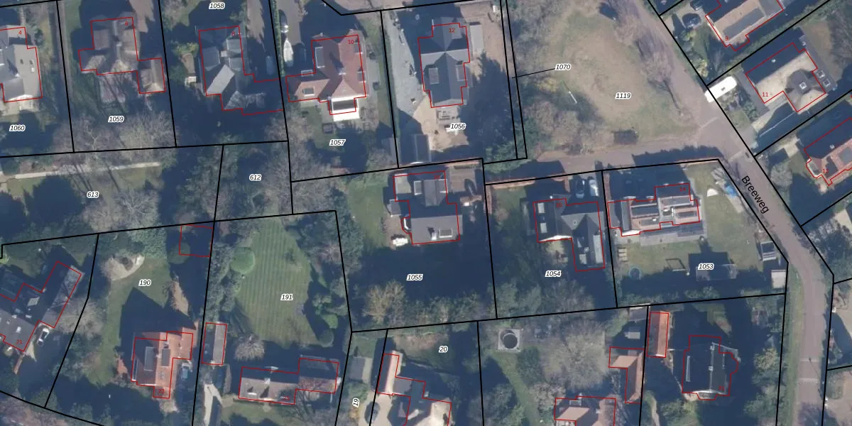 Breeweg 18 is gelegen op kadastraal perceel LRN01D1055. Deze kadastrale aanduiding is uniek en wordt gebruikt door het Kadaster om eigendomsrechten en andere zakelijke rechten vast te leggen. Het perceel maakt onderdeel uit van de kadastrale gemeente Laren Noord-Holland.