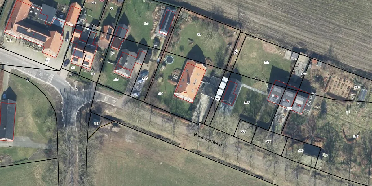 Buisweerdweg 10 is gelegen op kadastraal perceel LCM00U184. Deze kadastrale aanduiding is uniek en wordt gebruikt door het Kadaster om eigendomsrechten en andere zakelijke rechten vast te leggen. Het perceel maakt onderdeel uit van de kadastrale gemeente Lochem.