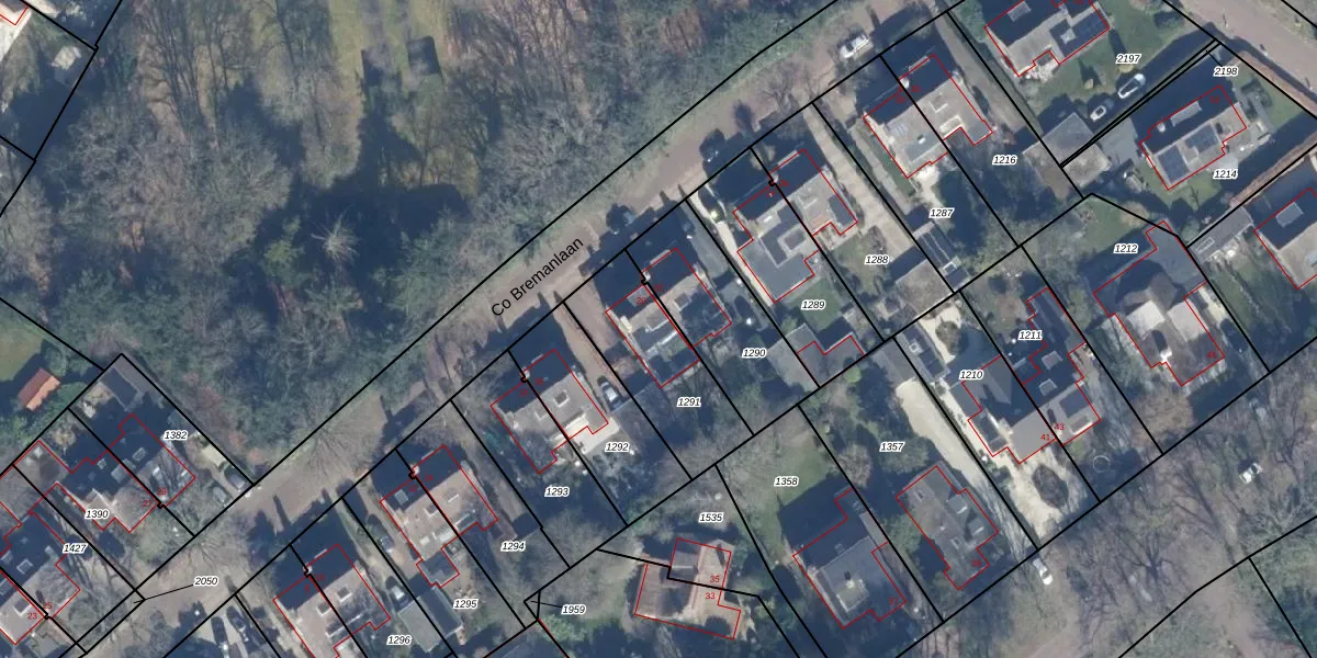Het perceel waarop Co Bremanlaan 20 staat heeft een oppervlakte van 415 m². Dit is een groot perceel. De perceeloppervlakte wordt geregistreerd door het Kadaster. Gedetailleerde informatie over de maten van dit perceel kunt u vinden in het rapport Kadastrale kaart met maatvoering van Co Bremanlaan 20.
