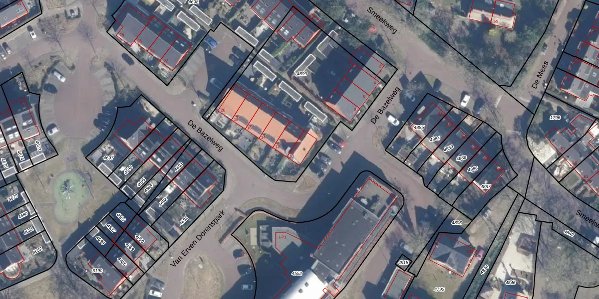 De Bazelweg 10 is gelegen op kadastraal perceel LRN01G4699. Deze kadastrale aanduiding is uniek en wordt gebruikt door het Kadaster om eigendomsrechten en andere zakelijke rechten vast te leggen. Het perceel maakt onderdeel uit van de kadastrale gemeente Laren Noord-Holland.