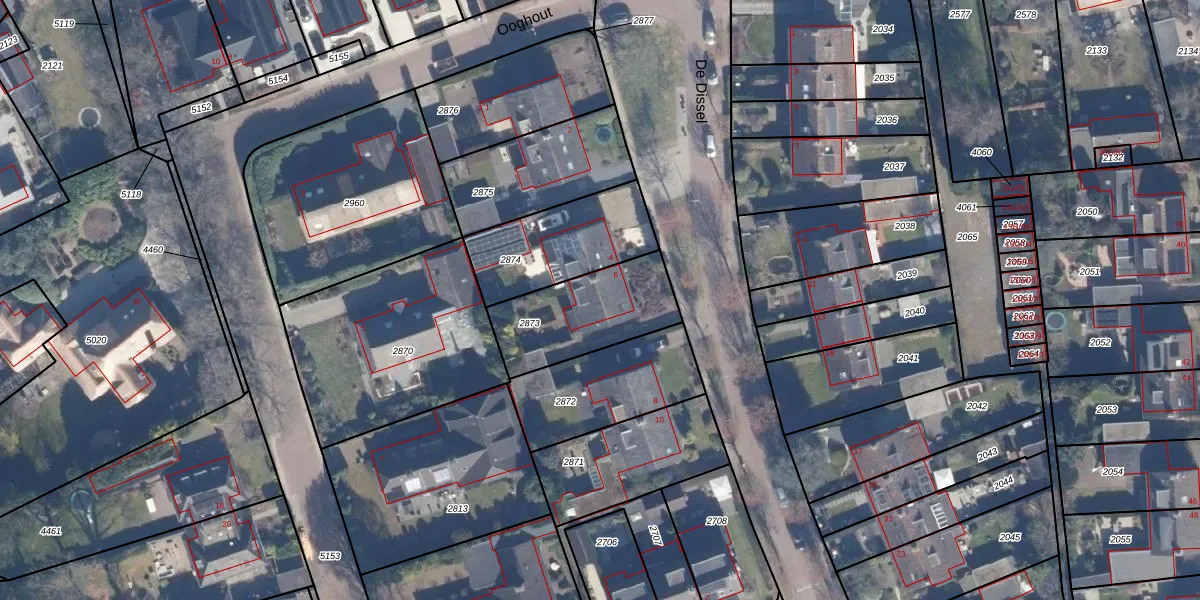 Het perceel waarop De Dissel 6 staat heeft een oppervlakte van 384 m². Dit is een groot perceel. De perceeloppervlakte wordt geregistreerd door het Kadaster. Gedetailleerde informatie over de maten van dit perceel kunt u vinden in het rapport Kadastrale kaart met maatvoering van De Dissel 6.