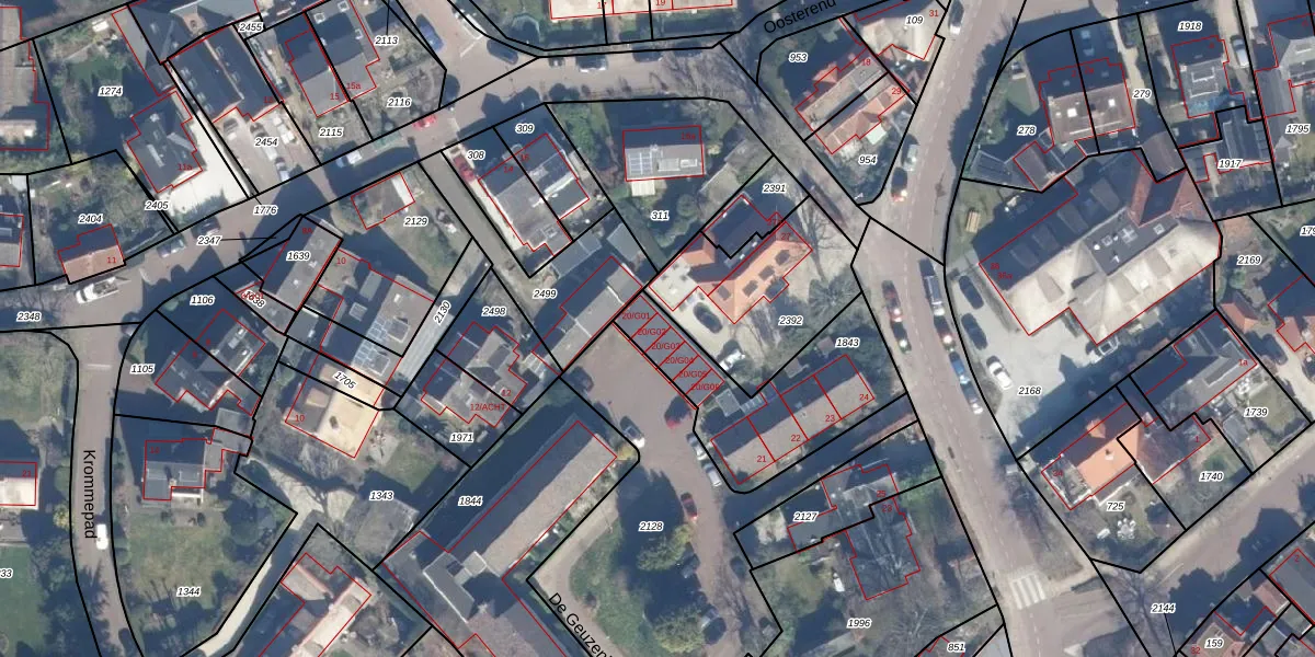 Het perceel waarop De Geuzenhoek 20-G02 staat heeft een oppervlakte van 580 m². Dit is een groot perceel. De perceeloppervlakte wordt geregistreerd door het Kadaster. Gedetailleerde informatie over de maten van dit perceel kunt u vinden in het rapport Kadastrale kaart met maatvoering van De Geuzenhoek 20-G02.
