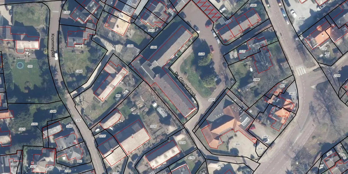 Het perceel waarop De Geuzenhoek 9 staat heeft een oppervlakte van 1150 m². Dit is een zeer groot perceel. De perceeloppervlakte wordt geregistreerd door het Kadaster. Gedetailleerde informatie over de maten van dit perceel kunt u vinden in het rapport Kadastrale kaart met maatvoering van De Geuzenhoek 9.