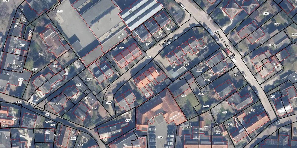 Het perceel waarop De Kamp 10 staat heeft een oppervlakte van 727 m². Dit is een groot perceel. De perceeloppervlakte wordt geregistreerd door het Kadaster. Gedetailleerde informatie over de maten van dit perceel kunt u vinden in het rapport Kadastrale kaart met maatvoering van De Kamp 10.