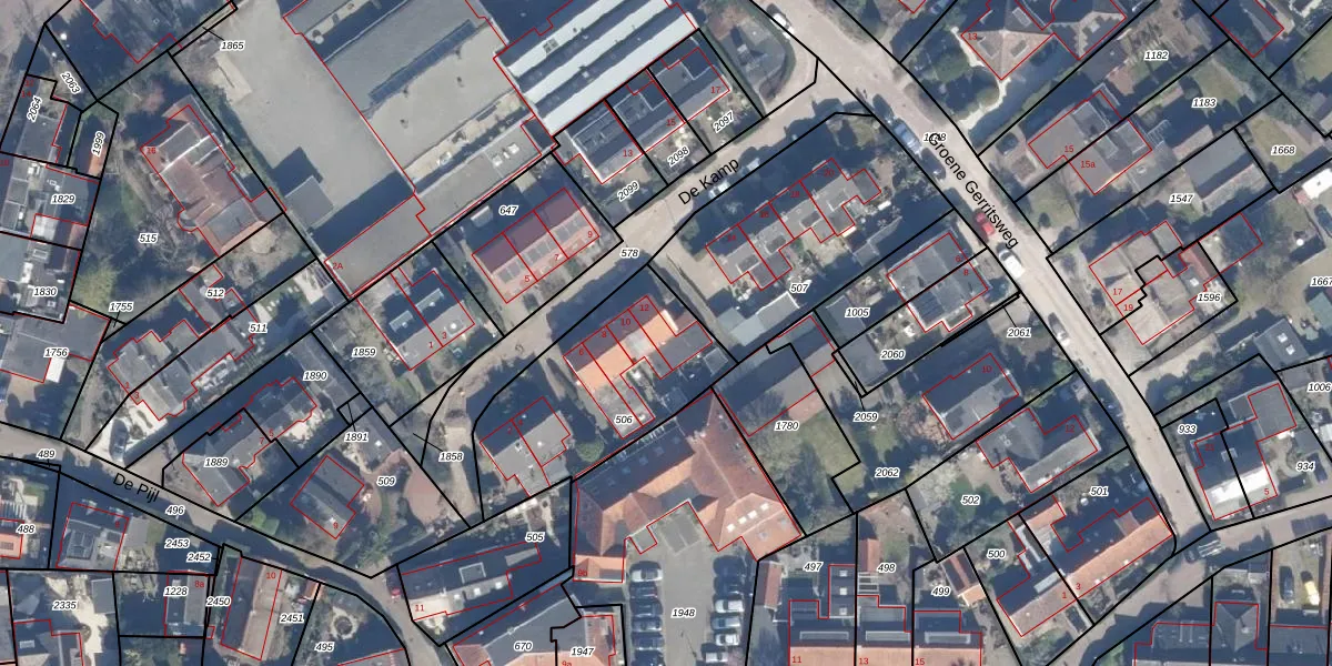 Het perceel waarop De Kamp 12 staat heeft een oppervlakte van 727 m². Dit is een groot perceel. De perceeloppervlakte wordt geregistreerd door het Kadaster. Gedetailleerde informatie over de maten van dit perceel kunt u vinden in het rapport Kadastrale kaart met maatvoering van De Kamp 12.