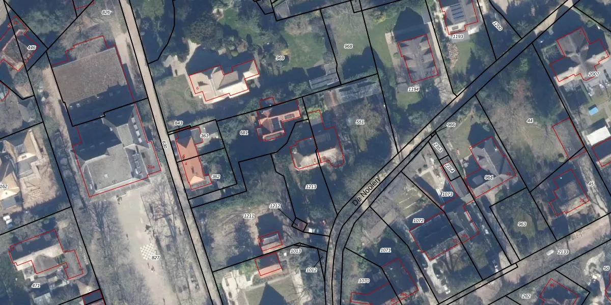 Het perceel waarop De Noolen 1 staat heeft een oppervlakte van 435 m². Dit is een groot perceel. De perceeloppervlakte wordt geregistreerd door het Kadaster. Gedetailleerde informatie over de maten van dit perceel kunt u vinden in het rapport Kadastrale kaart met maatvoering van De Noolen 1.