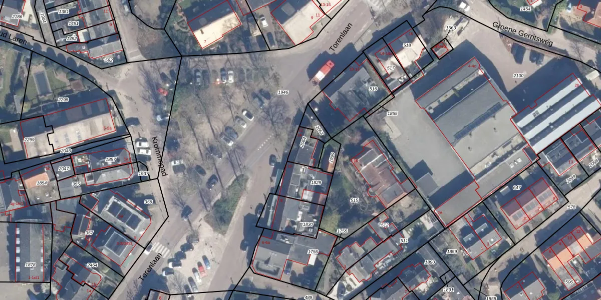 Het adres ligt op het perceel LRN01-F-2064, dat zich in de kadastrale gemeente Laren Noord-Holland bevindt. Het perceel is 103 m² groot. Dat is kleiner dan de gemiddelde perceeloppervlakte in Laren Noord-Holland, dat op 1839,81 m² ligt. Het kleinste perceel in de kadastrale gemeente is 0 m² groot. De grootste perceeloppervlakte is 1,24 km². Er zijn 2 adressen aanwezig op het perceel. De laatste wijziging in het de Basisregistratie Kadaster (BRK) was op 16-04-2004.