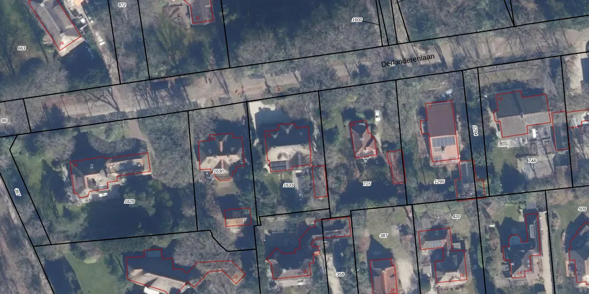 Het perceel waarop Derkinderenlaan 21 staat heeft een oppervlakte van 975 m². Dit is een groot perceel. De perceeloppervlakte wordt geregistreerd door het Kadaster. Gedetailleerde informatie over de maten van dit perceel kunt u vinden in het rapport Kadastrale kaart met maatvoering van Derkinderenlaan 21.