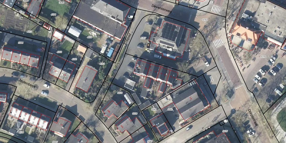 Deventerweg 1-b is gelegen op kadastraal perceel LRN02C5768. Deze kadastrale aanduiding is uniek en wordt gebruikt door het Kadaster om eigendomsrechten en andere zakelijke rechten vast te leggen. Het perceel maakt onderdeel uit van de kadastrale gemeente Laren Gelderland.