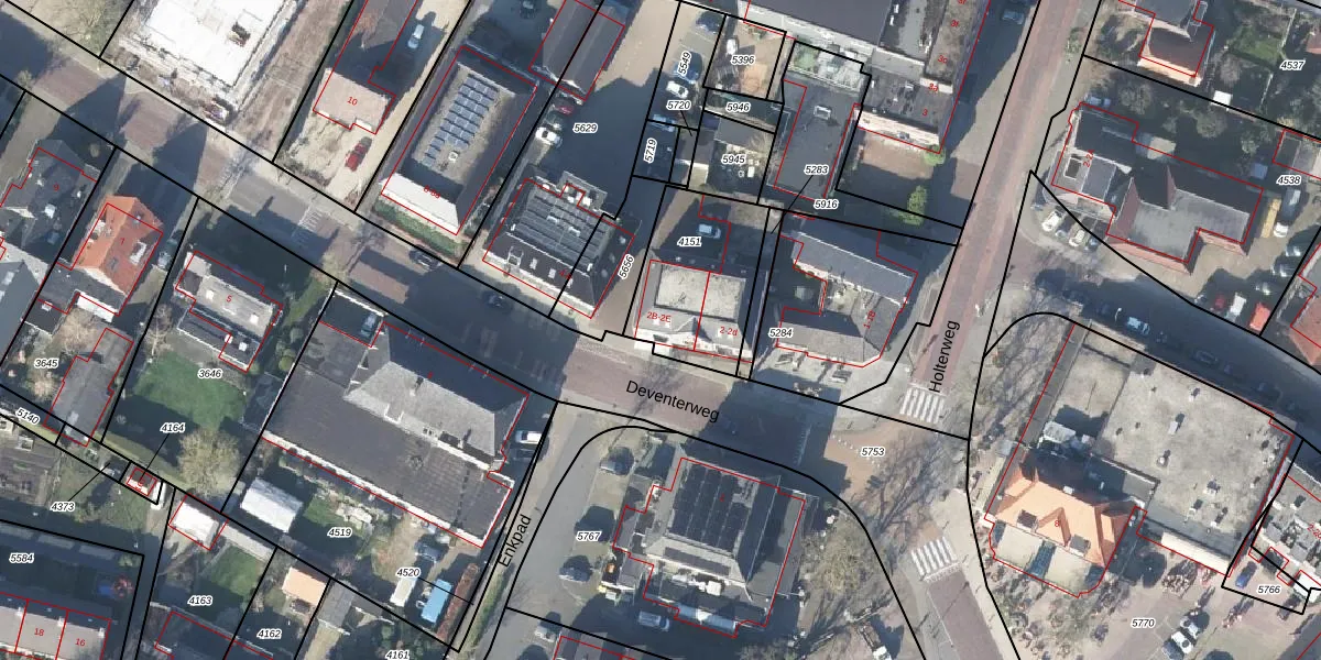 Deventerweg 2-b is gelegen op kadastraal perceel LRN02C4151. Deze kadastrale aanduiding is uniek en wordt gebruikt door het Kadaster om eigendomsrechten en andere zakelijke rechten vast te leggen. Het perceel maakt onderdeel uit van de kadastrale gemeente Laren Gelderland.