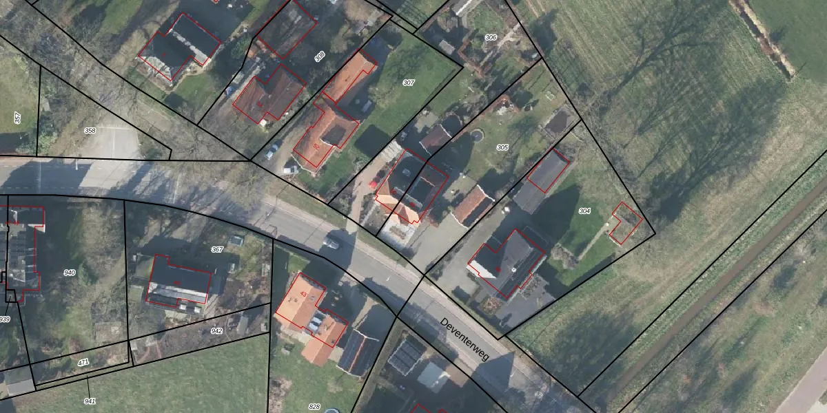 Het perceel waarop Deventerweg 48 staat heeft een oppervlakte van 990 m². Dit is een groot perceel. De perceeloppervlakte wordt geregistreerd door het Kadaster. Gedetailleerde informatie over de maten van dit perceel kunt u vinden in het rapport Kadastrale kaart met maatvoering van Deventerweg 48.