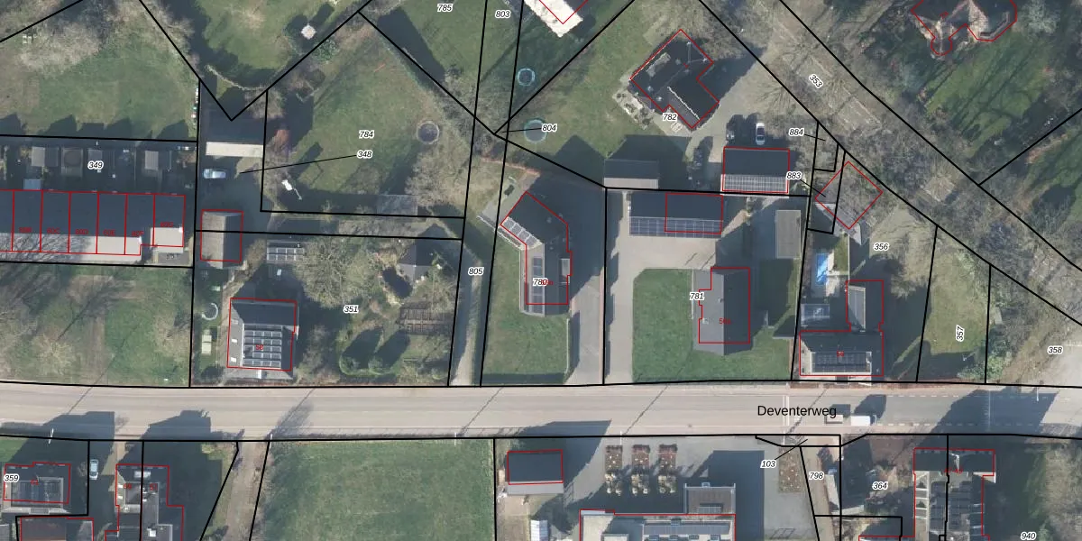 Het perceel waarop Deventerweg 56-b staat heeft een oppervlakte van 845 m². Dit is een groot perceel. De perceeloppervlakte wordt geregistreerd door het Kadaster. Gedetailleerde informatie over de maten van dit perceel kunt u vinden in het rapport Kadastrale kaart met maatvoering van Deventerweg 56-b.