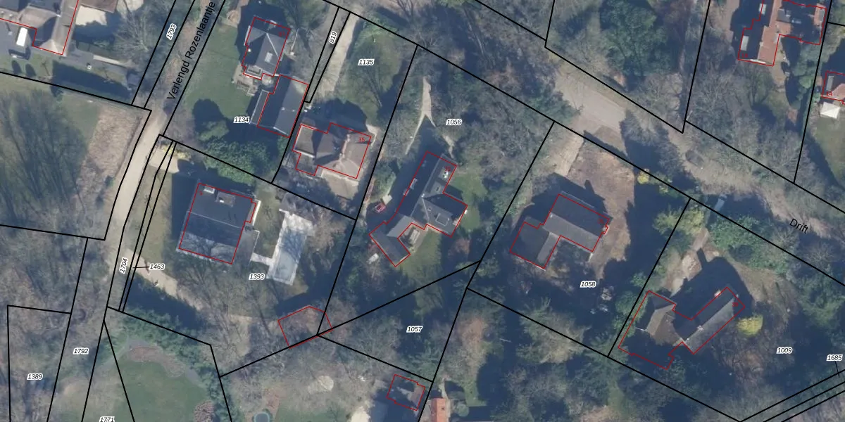 Het perceel waarop Drift 33 staat heeft een oppervlakte van 1843 m². Dit is een zeer groot perceel. De perceeloppervlakte wordt geregistreerd door het Kadaster. Gedetailleerde informatie over de maten van dit perceel kunt u vinden in het rapport Kadastrale kaart met maatvoering van Drift 33.
