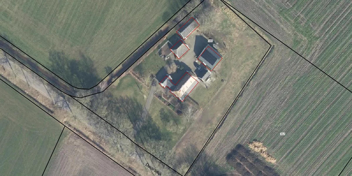 Het perceel waarop Dwarsdijk 1 staat heeft een oppervlakte van 5310 m². Dit is een zeer groot perceel. De perceeloppervlakte wordt geregistreerd door het Kadaster. Gedetailleerde informatie over de maten van dit perceel kunt u vinden in het rapport Kadastrale kaart met maatvoering van Dwarsdijk 1.
