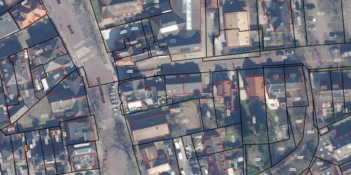 Het adres is gelegen op perceel 4043 in de sectie G en de kadastrale gemeente Laren Noord-Holland. De kadastrale aanduiding is aldus LRN01-G-4043. Het perceel is kleiner dan gemiddeld in Laren Noord-Holland. Het perceel is 400 m² groot, terwijl het gemiddelde ligt op 1837,36 m². Het grootste perceel in de kadastrale gemeente is 1,24 km². Het kleinste perceel heeft een oppervlakte van 0 m². Op het perceel liggen in totaal 5 adressen. De laatste wijziging in het de Basisregistratie Kadaster (BRK) was op 23-11-1999.