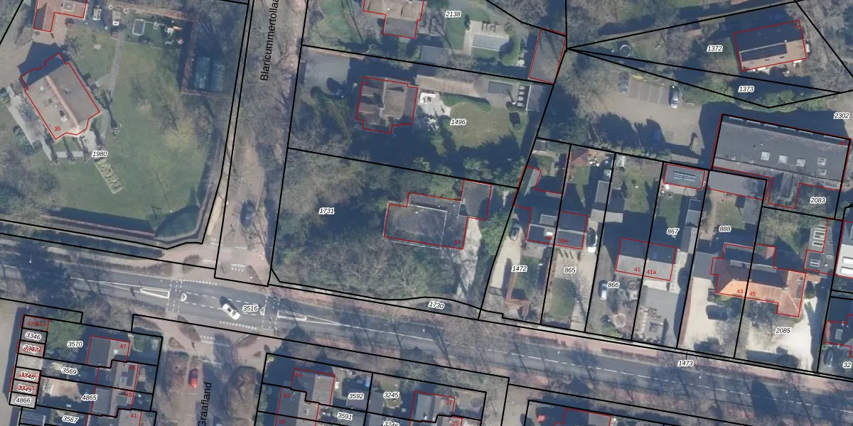 Het adres ligt op het perceel LRN01-F-1731, dat zich in de kadastrale gemeente Laren Noord-Holland bevindt. Het perceel is 1575 m² groot. Dat is kleiner dan de gemiddelde perceeloppervlakte in Laren Noord-Holland, dat op 1839,81 m² ligt. Het grootste perceel in de kadastrale gemeente is 1,24 km². Het kleinste perceel heeft een oppervlakte van 0 m². Dit is het enige adres dat aanwezig is op het perceel. De laatste wijziging in het de Basisregistratie Kadaster (BRK) was op 20-02-2007.