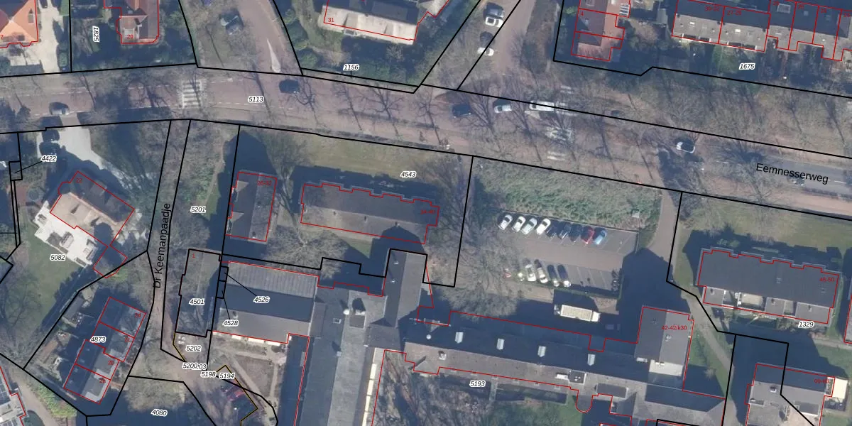 Eemnesserweg 40 is gelegen op kadastraal perceel LRN01G4543. Deze kadastrale aanduiding is uniek en wordt gebruikt door het Kadaster om eigendomsrechten en andere zakelijke rechten vast te leggen. Het perceel maakt onderdeel uit van de kadastrale gemeente Laren Noord-Holland.