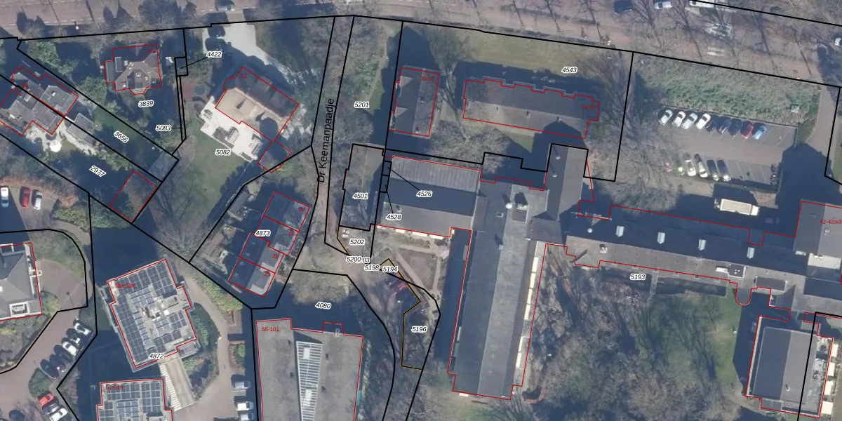 Het adres is gelegen op perceel 5193 in de sectie G en de kadastrale gemeente Laren Noord-Holland. De kadastrale aanduiding is aldus LRN01-G-5193. De oppervlakte van het perceel is 8349 m². Dat is groter dan gemiddeld in Laren Noord-Holland, waar de gemiddelde perceeloppervlakte op 1838,18 m² ligt. De grootste perceeloppervlakte in de kadastrale gemeente is 1,24 km². De kleinste oppervlakte bedraagt 0 m². Op het perceel liggen in totaal 65 adressen. De huidige grenzen van het perceel zijn digitaal in de Basisregistratie Kadaster (BRK) geregistreerd op 08-11-2024.