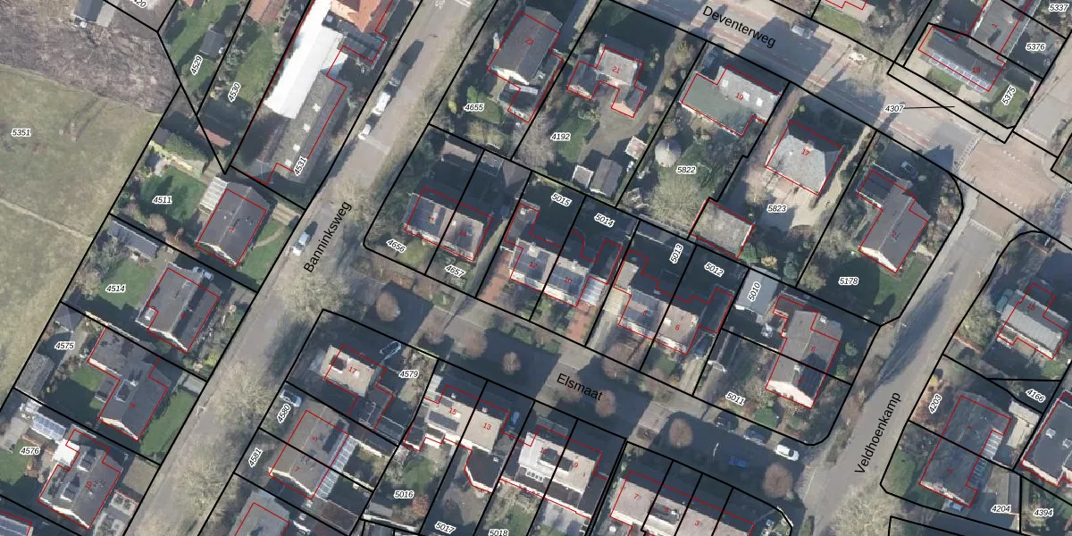 Elsmaat 12 is gelegen op kadastraal perceel LRN02C5015. Deze kadastrale aanduiding is uniek en wordt gebruikt door het Kadaster om eigendomsrechten en andere zakelijke rechten vast te leggen. Het perceel maakt onderdeel uit van de kadastrale gemeente Laren Gelderland.