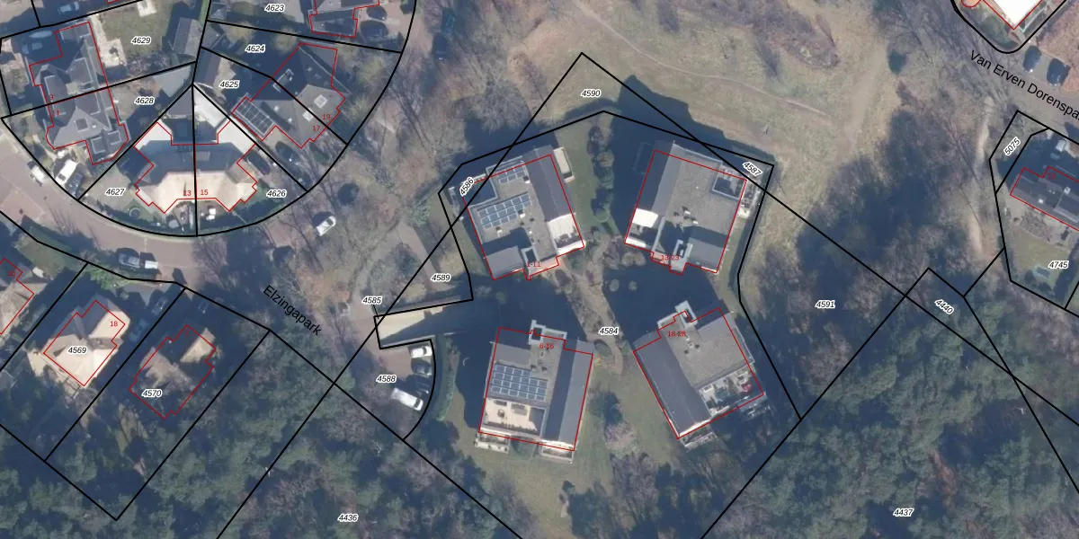 Het perceel waarop Elzingapark 1 staat heeft een oppervlakte van 4485 m². Dit is een zeer groot perceel. De perceeloppervlakte wordt geregistreerd door het Kadaster. Gedetailleerde informatie over de maten van dit perceel kunt u vinden in het rapport Kadastrale kaart met maatvoering van Elzingapark 1.