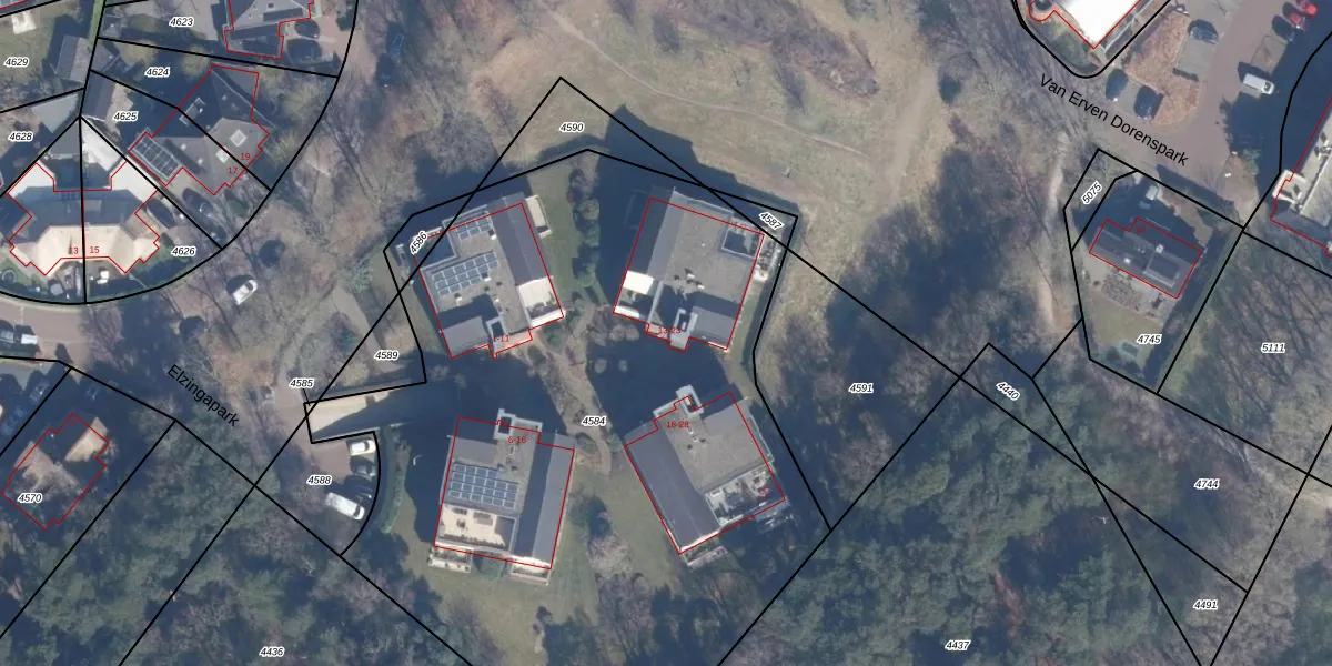 Het perceel waarop Elzingapark 13 staat heeft een oppervlakte van 4485 m². Dit is een zeer groot perceel. De perceeloppervlakte wordt geregistreerd door het Kadaster. Gedetailleerde informatie over de maten van dit perceel kunt u vinden in het rapport Kadastrale kaart met maatvoering van Elzingapark 13.