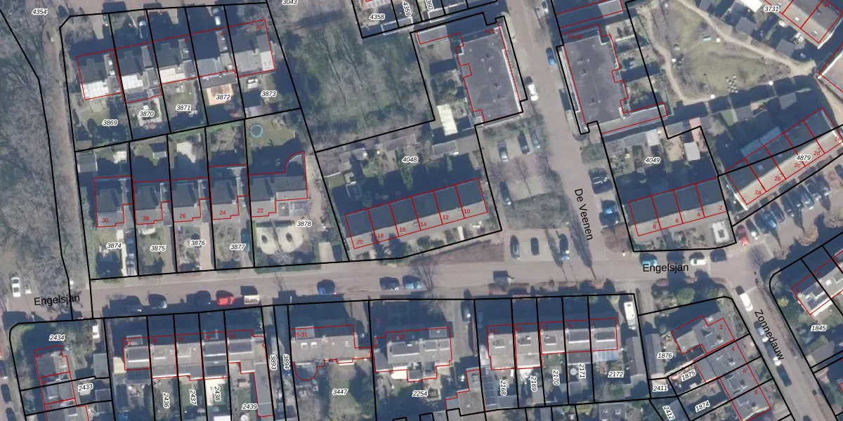 Het perceel waarop Engelsjan 14 staat heeft een oppervlakte van 1615 m². Dit is een zeer groot perceel. De perceeloppervlakte wordt geregistreerd door het Kadaster. Gedetailleerde informatie over de maten van dit perceel kunt u vinden in het rapport Kadastrale kaart met maatvoering van Engelsjan 14.