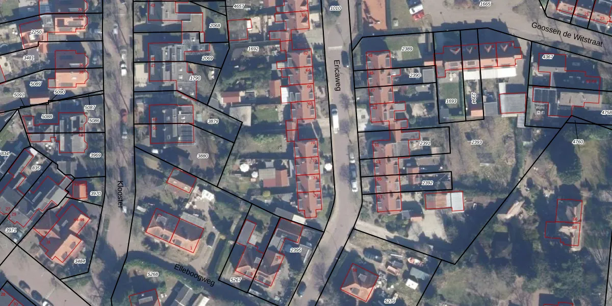 Het perceel waarop Ericaweg 70 staat heeft een oppervlakte van 2819 m². Dit is een zeer groot perceel. De perceeloppervlakte wordt geregistreerd door het Kadaster. Gedetailleerde informatie over de maten van dit perceel kunt u vinden in het rapport Kadastrale kaart met maatvoering van Ericaweg 70.