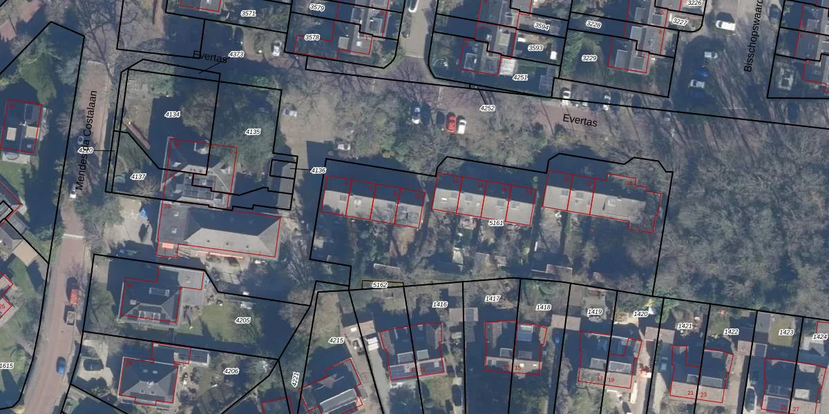 Evertas 10 is gelegen op kadastraal perceel LRN01G5161. Deze kadastrale aanduiding is uniek en wordt gebruikt door het Kadaster om eigendomsrechten en andere zakelijke rechten vast te leggen. Het perceel maakt onderdeel uit van de kadastrale gemeente Laren Noord-Holland.