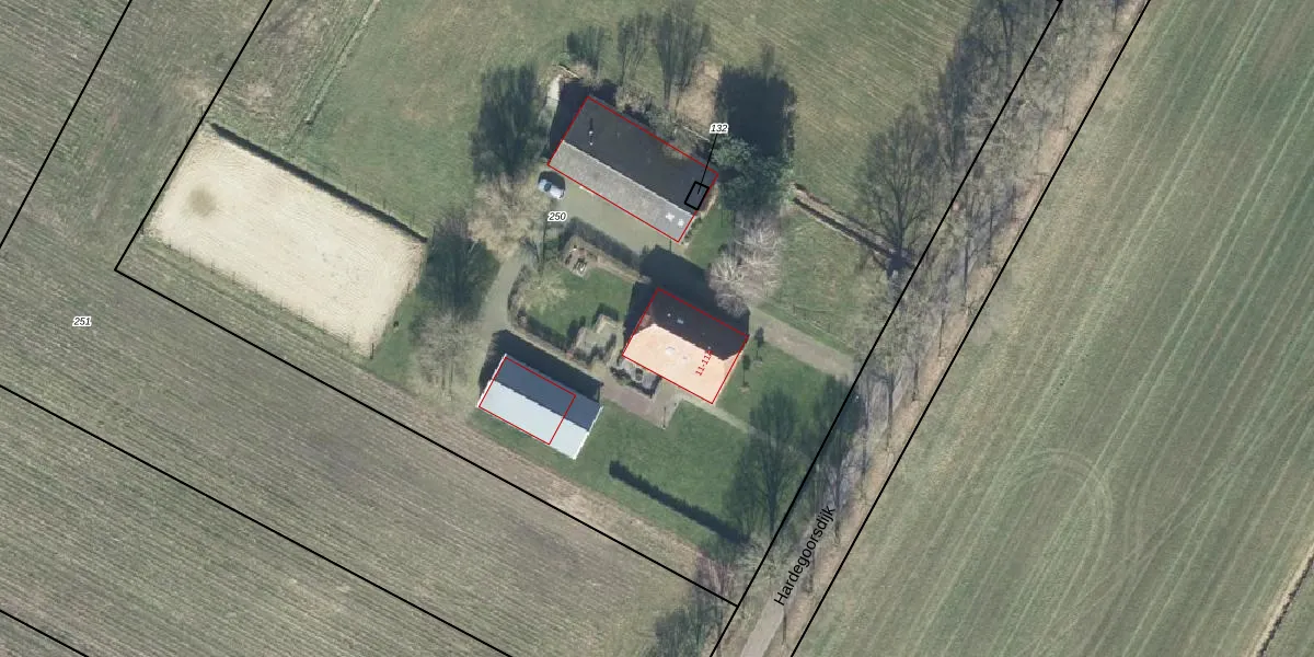 Het perceel waarop Hardegoorsdijk 11-a staat heeft een oppervlakte van 1,1 ha. Dit is een zeer groot perceel. De perceeloppervlakte wordt geregistreerd door het Kadaster. Gedetailleerde informatie over de maten van dit perceel kunt u vinden in het rapport Kadastrale kaart met maatvoering van Hardegoorsdijk 11-a.