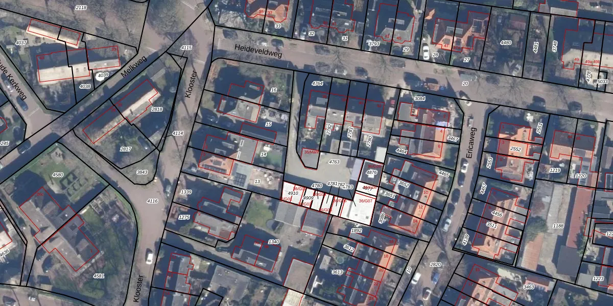 Heideveldweg 36-Mant is gelegen op kadastraal perceel LRN01G4764. Deze kadastrale aanduiding is uniek en wordt gebruikt door het Kadaster om eigendomsrechten en andere zakelijke rechten vast te leggen. Het perceel maakt onderdeel uit van de kadastrale gemeente Laren Noord-Holland.