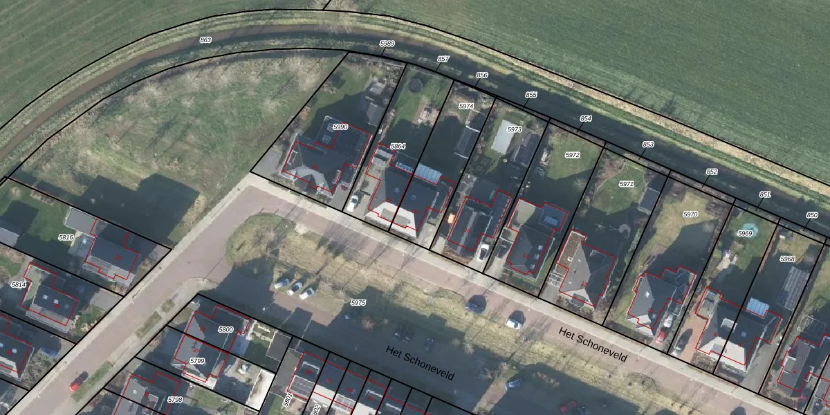 Het Schoneveld 20 is gelegen op kadastraal perceel LRN02C5974. Deze kadastrale aanduiding is uniek en wordt gebruikt door het Kadaster om eigendomsrechten en andere zakelijke rechten vast te leggen. Het perceel maakt onderdeel uit van de kadastrale gemeente Laren Gelderland.