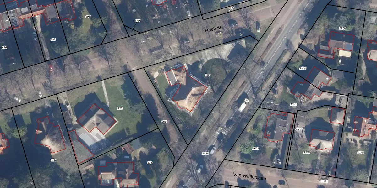 Het perceel waarop Hoefloo 1-a staat heeft een oppervlakte van 1560 m². Dit is een zeer groot perceel. De perceeloppervlakte wordt geregistreerd door het Kadaster. Gedetailleerde informatie over de maten van dit perceel kunt u vinden in het rapport Kadastrale kaart met maatvoering van Hoefloo 1-a.