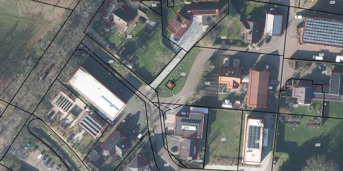 Gebruik de zoekbalk of klik op een perceel voor informatie over de adressen binnen dit perceel.