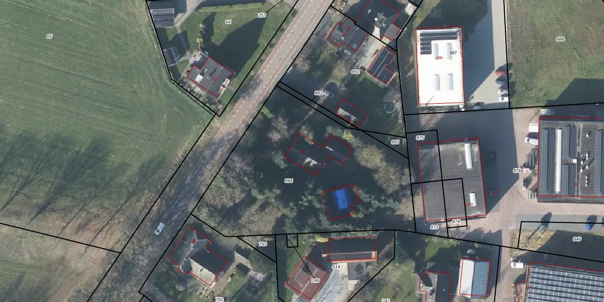 Gebruik de zoekbalk of klik op een perceel voor informatie over de adressen binnen dit perceel.