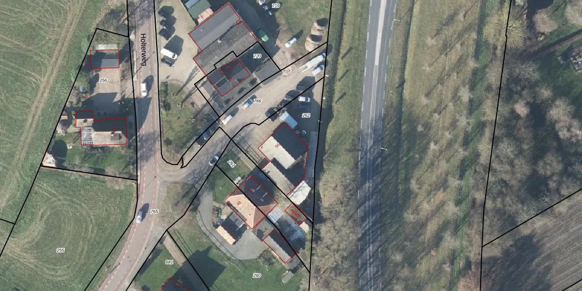 Het perceel waarop Holterweg 50 staat heeft een oppervlakte van 715 m². Dit is een groot perceel. De perceeloppervlakte wordt geregistreerd door het Kadaster. Gedetailleerde informatie over de maten van dit perceel kunt u vinden in het rapport Kadastrale kaart met maatvoering van Holterweg 50.