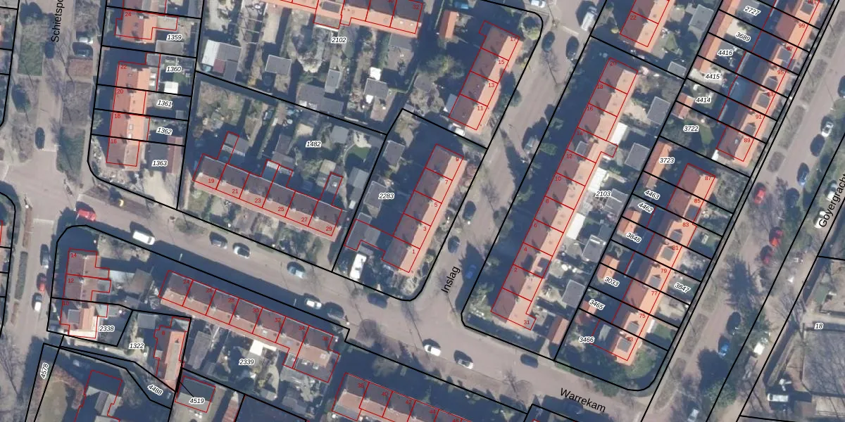 Het perceel waarop Inslag 5 staat heeft een oppervlakte van 908 m². Dit is een groot perceel. De perceeloppervlakte wordt geregistreerd door het Kadaster. Gedetailleerde informatie over de maten van dit perceel kunt u vinden in het rapport Kadastrale kaart met maatvoering van Inslag 5.