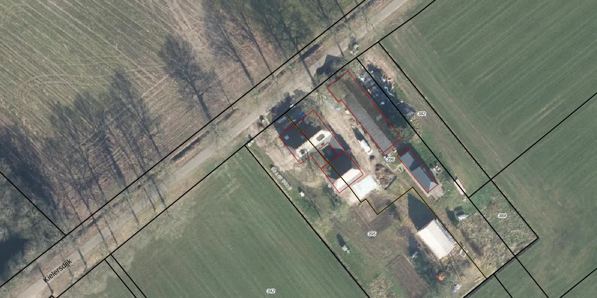 Het perceel waarop Kielersdijk 2 staat heeft een oppervlakte van 2216 m². Dit is een zeer groot perceel. De perceeloppervlakte wordt geregistreerd door het Kadaster. Gedetailleerde informatie over de maten van dit perceel kunt u vinden in het rapport Kadastrale kaart met maatvoering van Kielersdijk 2.