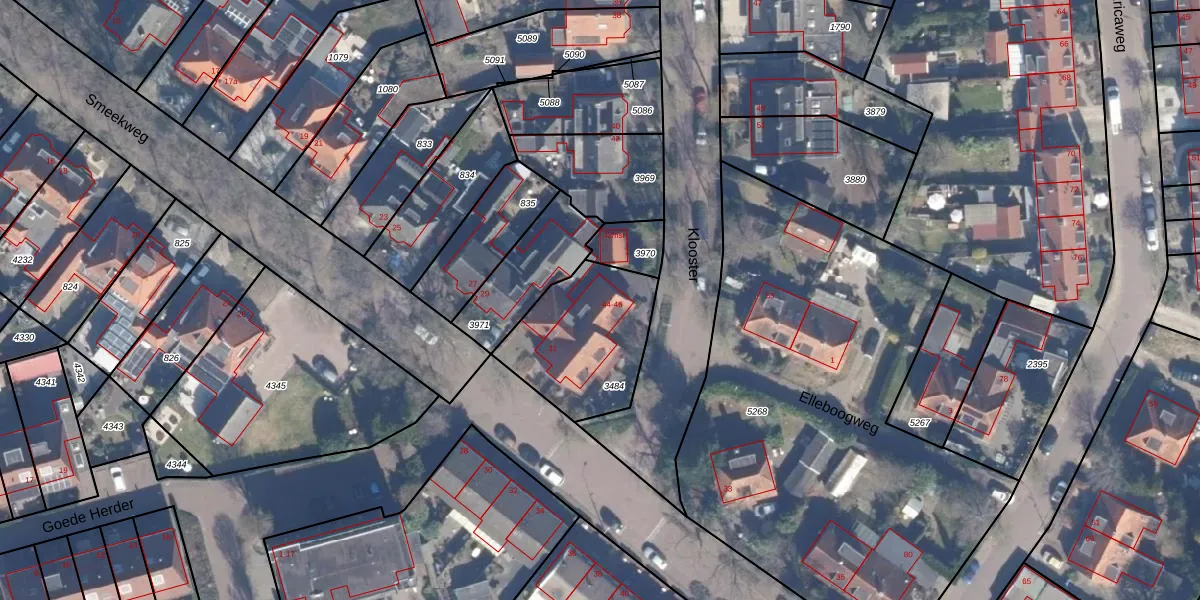 Het perceel waarop Klooster 44 staat heeft een oppervlakte van 470 m². Dit is een groot perceel. De perceeloppervlakte wordt geregistreerd door het Kadaster. Gedetailleerde informatie over de maten van dit perceel kunt u vinden in het rapport Kadastrale kaart met maatvoering van Klooster 44.