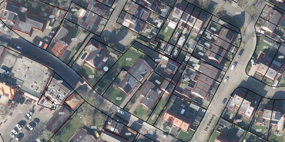 Het perceel waarop Kloosterweg 5-a staat heeft een oppervlakte van 610 m². Dit is een groot perceel. De perceeloppervlakte wordt geregistreerd door het Kadaster. Gedetailleerde informatie over de maten van dit perceel kunt u vinden in het rapport Kadastrale kaart met maatvoering van Kloosterweg 5-a.
