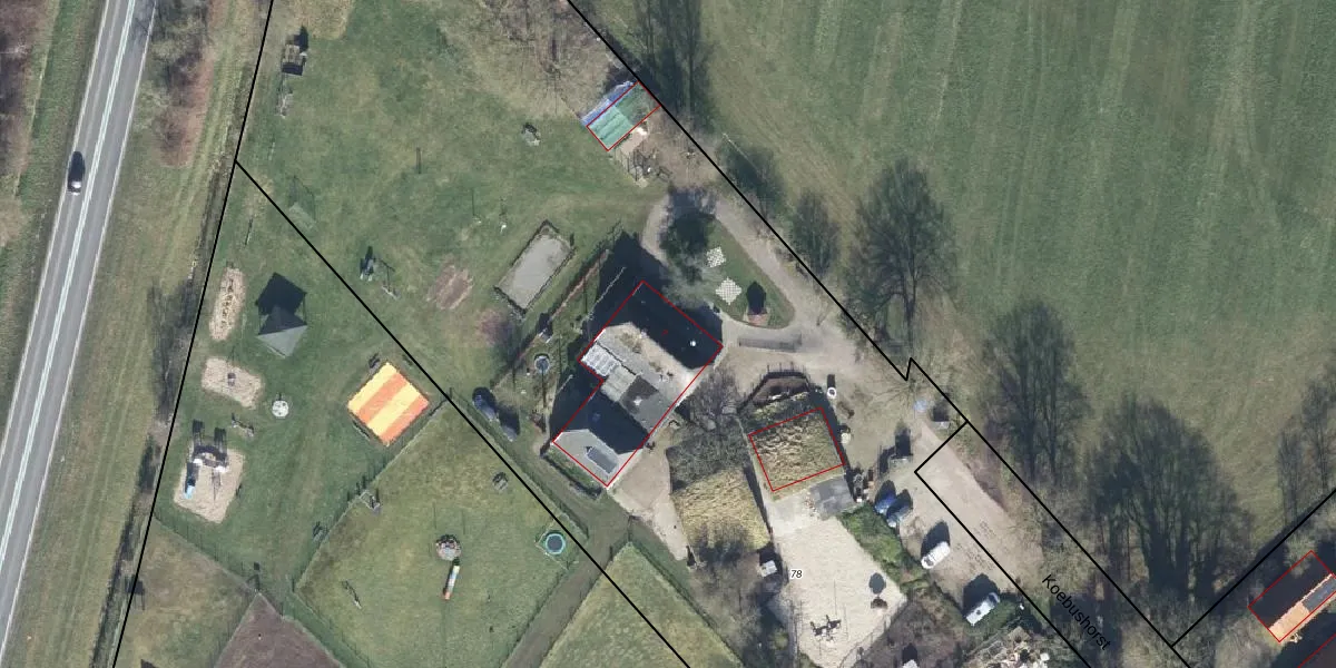Het perceel waarop Koebushorst 7 staat heeft een oppervlakte van 1,1 ha. Dit is een zeer groot perceel. De perceeloppervlakte wordt geregistreerd door het Kadaster. Gedetailleerde informatie over de maten van dit perceel kunt u vinden in het rapport Kadastrale kaart met maatvoering van Koebushorst 7.