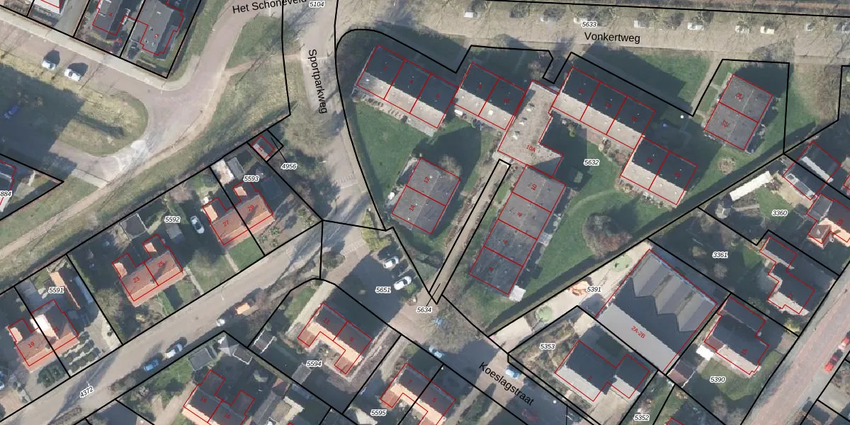 Koeslagstraat 14 is gelegen op kadastraal perceel LRN02C5632. Deze kadastrale aanduiding is uniek en wordt gebruikt door het Kadaster om eigendomsrechten en andere zakelijke rechten vast te leggen. Het perceel maakt onderdeel uit van de kadastrale gemeente Laren Gelderland.