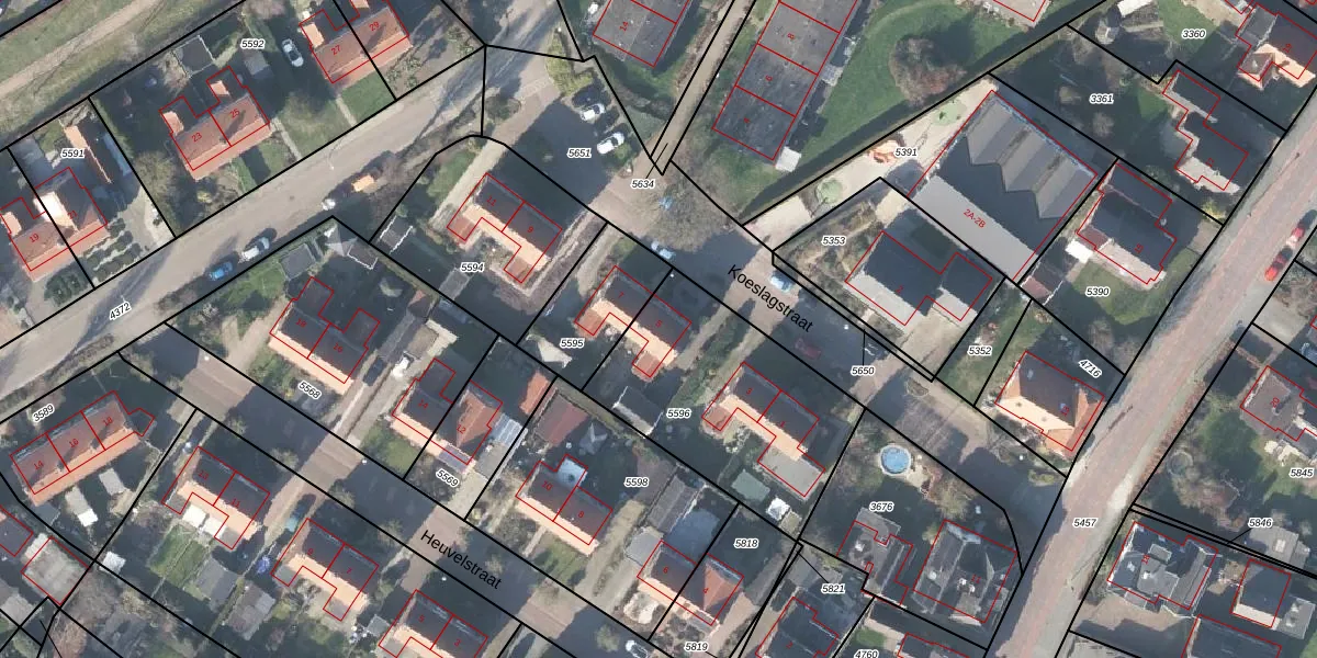 Het perceel waarop Koeslagstraat 5 staat heeft een oppervlakte van 894 m². Dit is een groot perceel. De perceeloppervlakte wordt geregistreerd door het Kadaster. Gedetailleerde informatie over de maten van dit perceel kunt u vinden in het rapport Kadastrale kaart met maatvoering van Koeslagstraat 5.