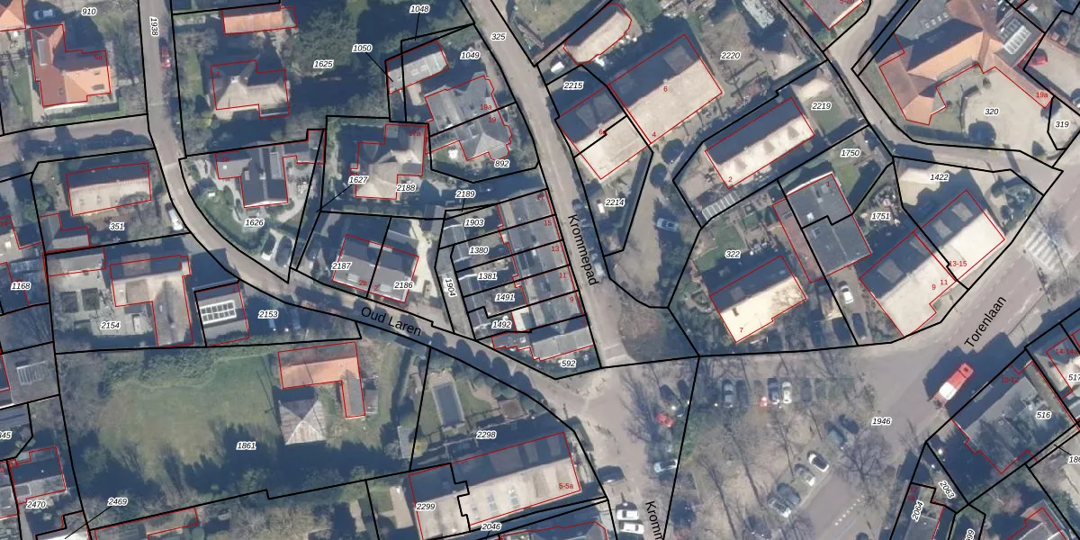 Krommepad 13 is gelegen op kadastraal perceel LRN01F1381. Deze kadastrale aanduiding is uniek en wordt gebruikt door het Kadaster om eigendomsrechten en andere zakelijke rechten vast te leggen. Het perceel maakt onderdeel uit van de kadastrale gemeente Laren Noord-Holland.